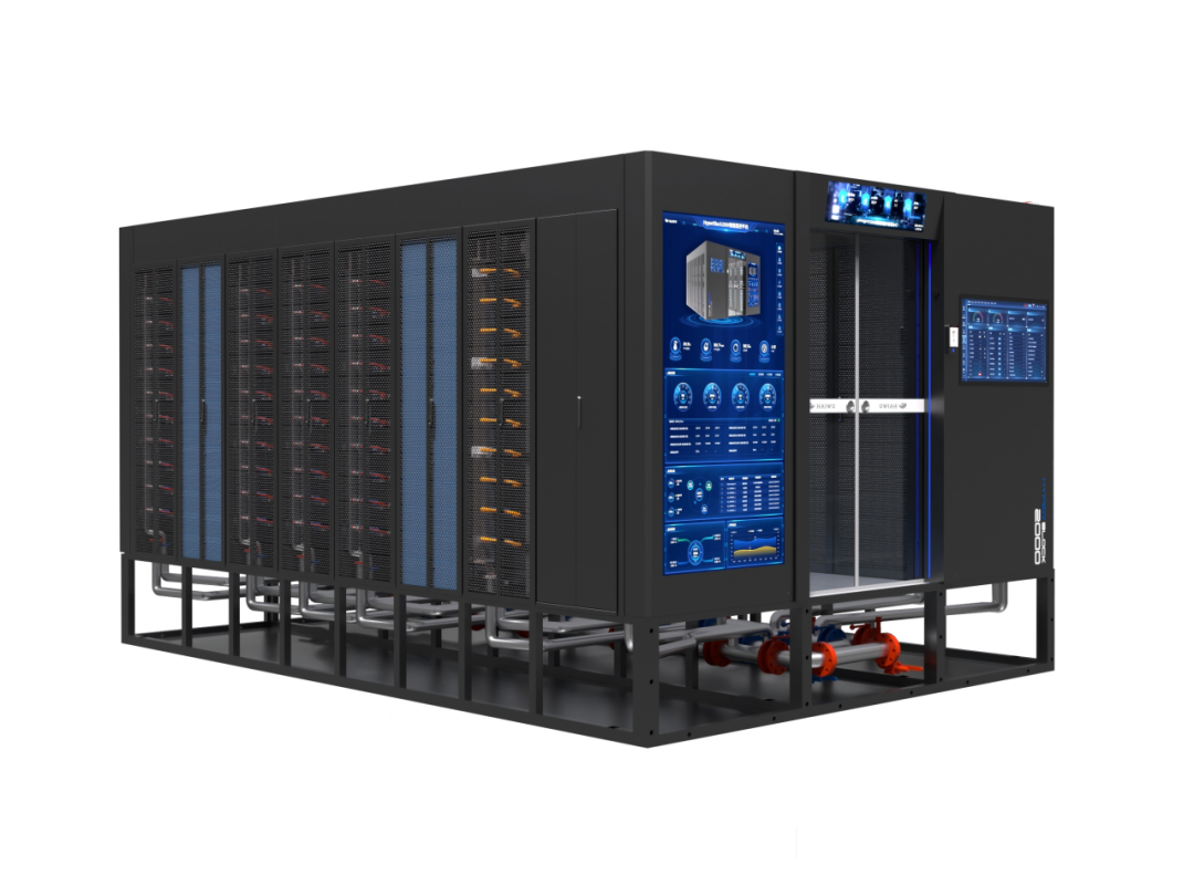 重磅展出的HyperBlock2000-LW液冷雙排微模塊,支持15~72kW/柜功率密度,實現PUE低至1.15。通過模塊化設計集成液冷機柜、CDU、預制管路、配電、封閉組件等功能單元,將復雜液冷工程轉化為簡潔的模塊化產品,極大提升部署效率和系統協同性能,滿足智算業務的快速上線與彈性擴容需求。