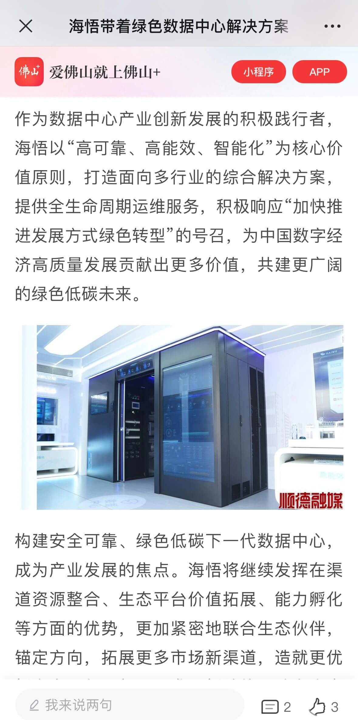 廣州日報報道:海悟綠色數據中心機房溫控解決方案成行業標桿