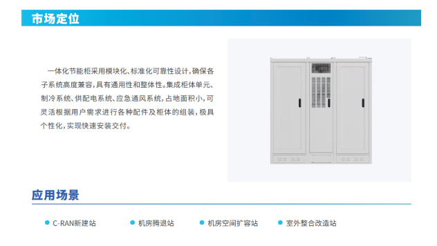 海悟一體化節(jié)能柜以“極簡、高效”為理念,采用模塊化、標(biāo)準(zhǔn)化設(shè)計(jì),確保各子系統(tǒng)高度兼容,具有通用性和整體性,整柜具有高密收容、高效可靠、極簡節(jié)地、綠色節(jié)能四大核心優(yōu)勢。