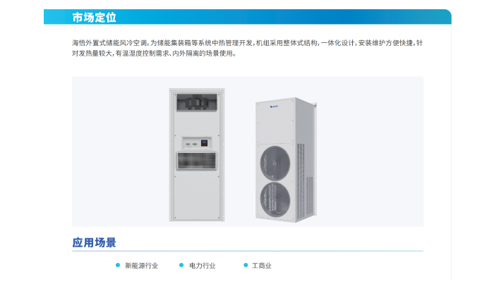 作為國內(nèi)知名的數(shù)字能源和清潔能源解決方案及解決方案定義的產(chǎn)品與服務(wù)提供商,海悟推出了PHU整體式全天候節(jié)能機(jī)組、一體化節(jié)能柜、儲能風(fēng)冷空調(diào)。