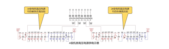 C級機房僅需要從同一個高壓站引兩路電源即可;若C級機房改B級機房,在有條件的情況下,應由不同的高壓站各引一路電源;若C級機房改A級機房,則必須由不同的高壓站各引一路電源,在一路電源故障時,另一路電源不應同時受到損壞。