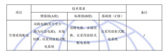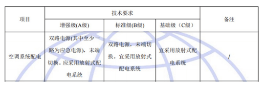 國標GB50174-2017《數(shù)據(jù)中心設計規(guī)范》中對于A、B、C三級數(shù)據(jù)中心空調(diào)系統(tǒng)配電的具體要求如下: