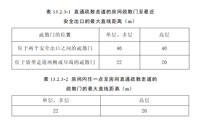 當數據中心按照廠房進行設計時,數據中心的火災危險性分類應為丙類,數據中心內任一點到最近安全出口的直線距離不應大于表13.2.2的規定。當主機房設有高靈敏度的吸氣式煙霧探測火災報警系統時,主機房內任一點到最近安全出口的直線距離可增加50%。
