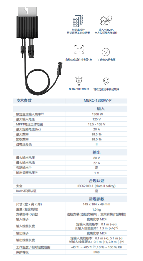 優(yōu)化器的選型:選擇采用華為公司出品的MERC-1300W-P優(yōu)化器產(chǎn)品。
