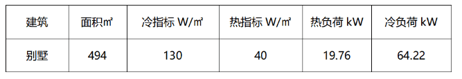本工程為二層建筑,高9.6m,建筑面積為494㎡,采用海悟集團(tuán)自產(chǎn)的熱泵作為冷熱源,進(jìn)行供暖及制冷。