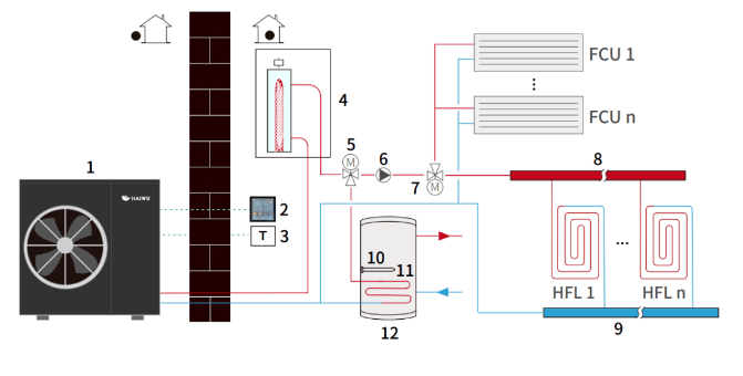 采用熱泵技術(shù)為住宅提供空調(diào)制冷和供暖;