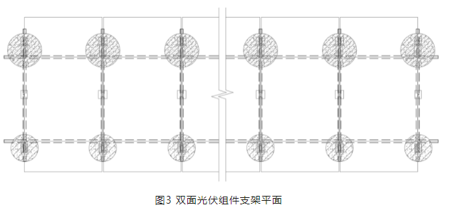由于雙面光伏組件背后不宜有遮擋,因此雙面光伏組件不適合采用立柱“橫梁+檁條”的結構體系。因此,可將檁條取消,將光伏組件直接連接到兩側的橫梁上,如圖3所示。