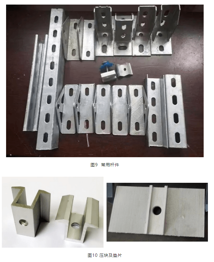 本創新支架方案的優勢就在于能采用常規的光伏支架桿件及材料,具有廣泛的適用性。常用桿件如圖9所示。
