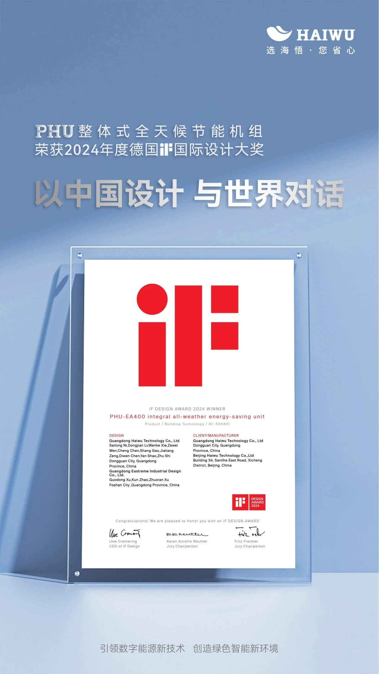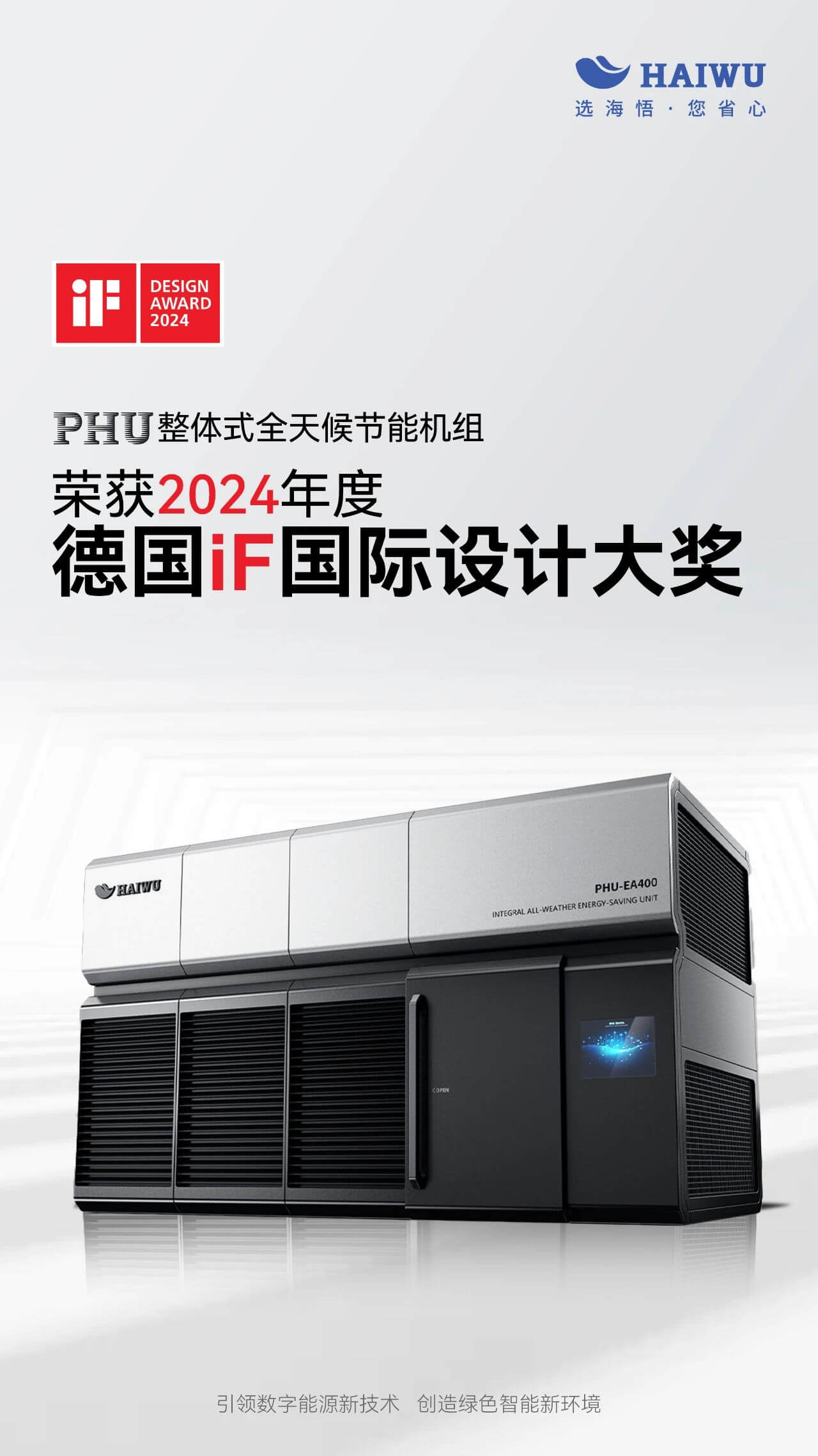 海悟PHU整體式全天候節能機組憑借出色的工業設計和創新實力,從來自72個國家與地區的近萬件作品中脫穎而出,一舉斬獲2024年德國iF設計獎!
