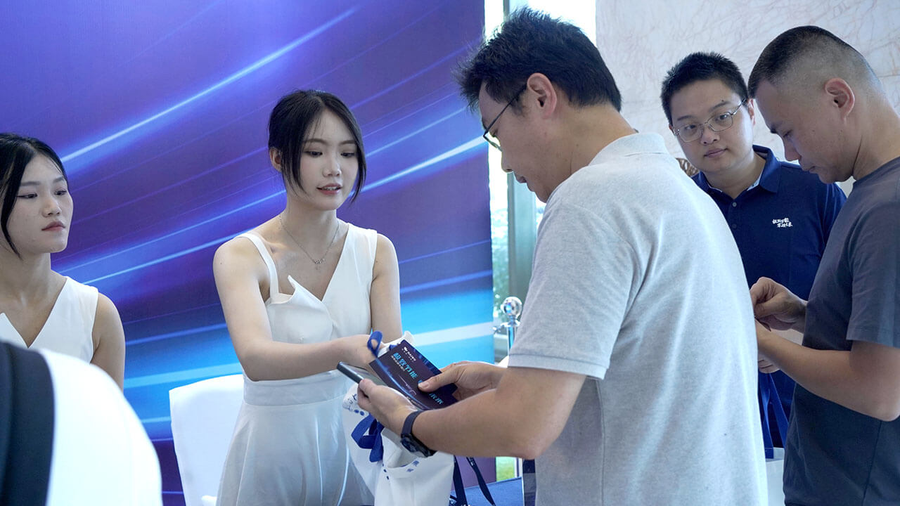 下午兩點,隨著嘉賓們的陸續抵達,活動正式拉開序幕。簽到區人頭攢動,每位嘉賓都領取到了精心準備的公司介紹折頁、精美小禮品以及詳盡的數據中心解決方案畫冊,現場背景簽名墻更是成為了大家爭相合影留念的熱門地點。展車旁,早已聚集了眾多好奇的參觀者,他們迫不及待地想要一睹海悟集團最新技術的風采。
