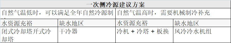 二次側相對穩定,通過冷卻液分配單元 (CDU) 及后面的系統架構進行配置。一次側可以考慮多種的使用條件和場景進行組合。按照制冷的方式,主要分成機械制冷和自然冷卻制冷,同時結合國內情況,進行劃分如下: