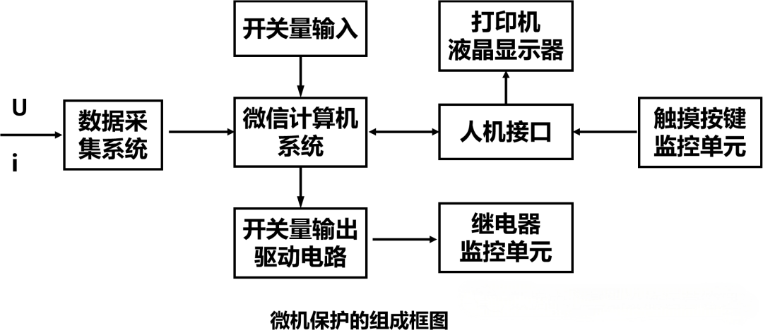 利用計算機(jī)系統(tǒng)采集和處理電力系統(tǒng)的運行數(shù)據(jù),通過數(shù)值計算迅速而準(zhǔn)確地判斷電力系統(tǒng)的故障及故障范圍,并經(jīng)過嚴(yán)密邏輯過程后有選擇性地執(zhí)行跳閘和報警等命令,這種基于計算機(jī)系統(tǒng)的繼電保護(hù)裝置,就是計算機(jī)繼電保護(hù)。由于計算機(jī)系統(tǒng)多采用微處理器,所以也稱微機(jī)繼電保護(hù)。微機(jī)保護(hù)裝置的硬件構(gòu)成可分為以下六部分: